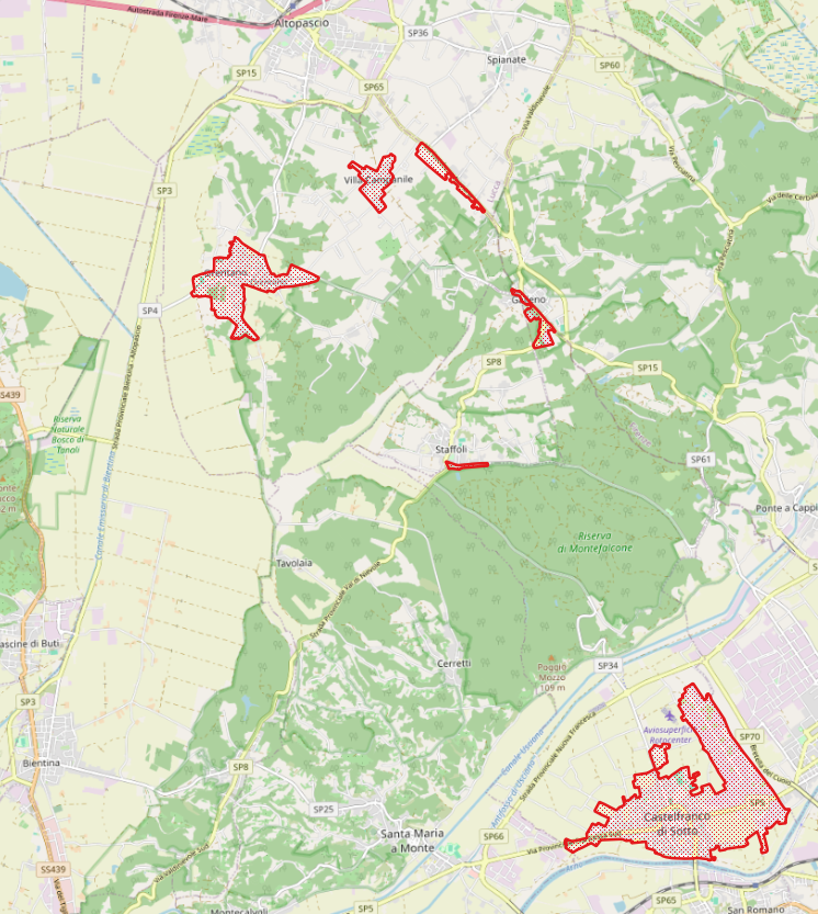 Cartografia dei limiti di frazione del Comune di Castelfranco di sotto