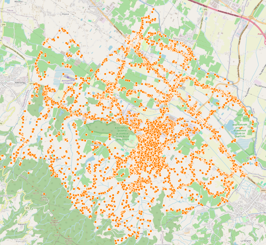 Posizionamento dei fontanelli pubblici presenti nel territorio del Comune di Castelfranco di sotto